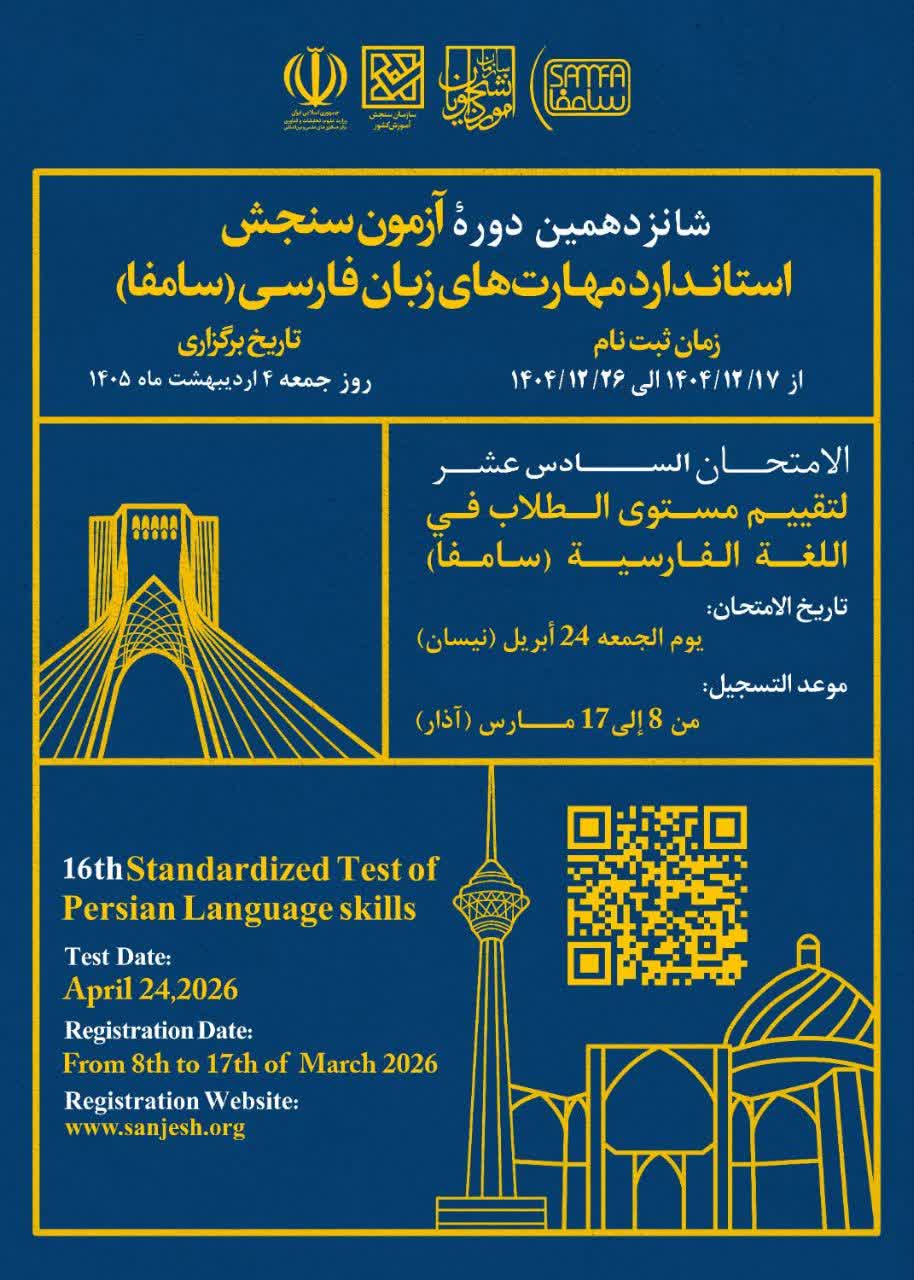 وزارت علوم تحقیقات و فناوری جمهوری اسلامی ایران شانزدهمین دوره آزمون سنجش استاندارد مهارتهای زبان فارسی- سامفا را برگزار می نماید.
